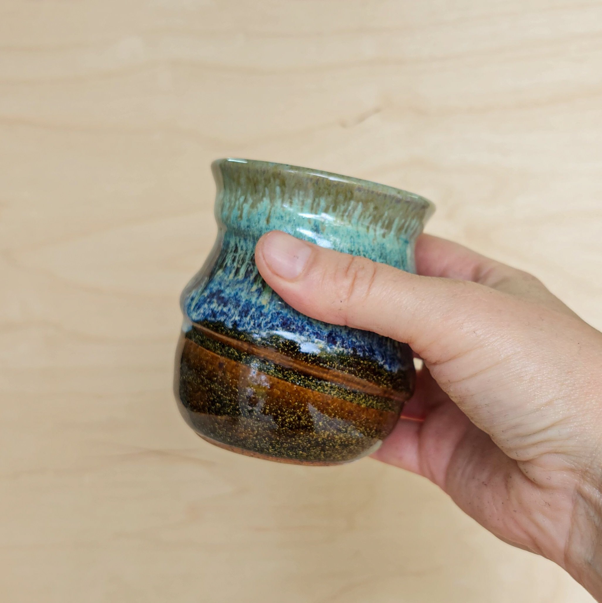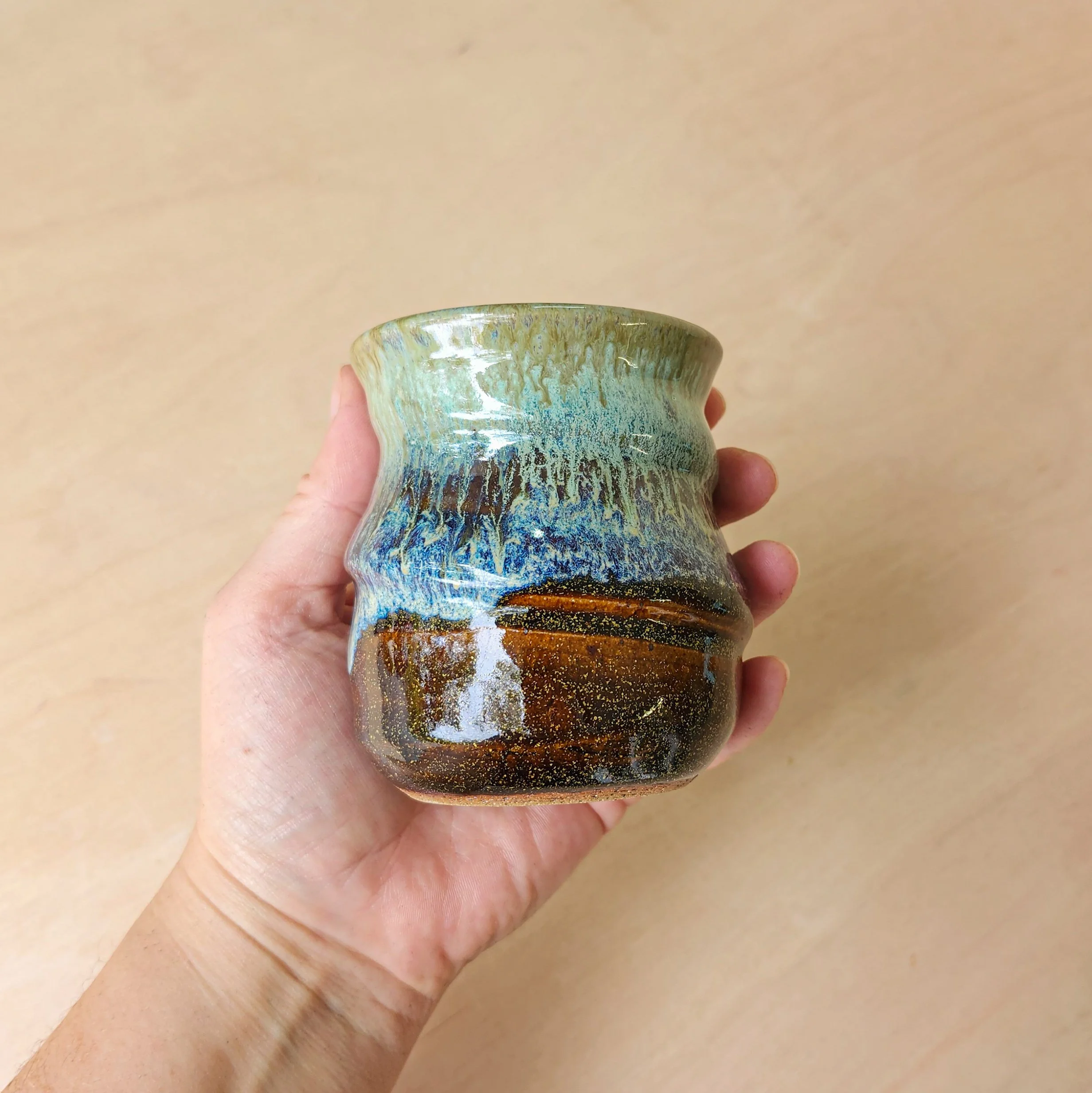 A drinking cup that holds about 300mls of liquid bliss. Good for both hot and cold drinks. Dishwasher safe and microwave safe.